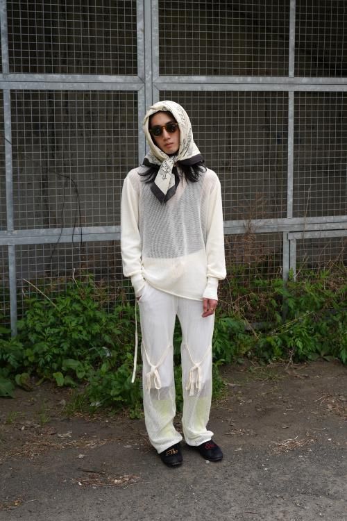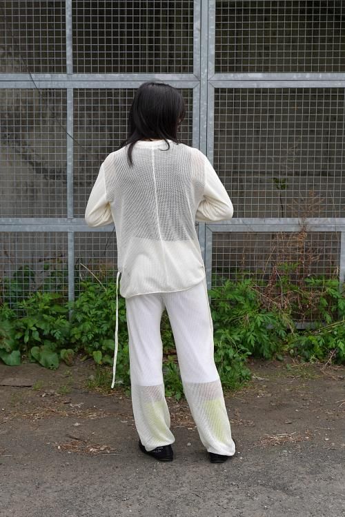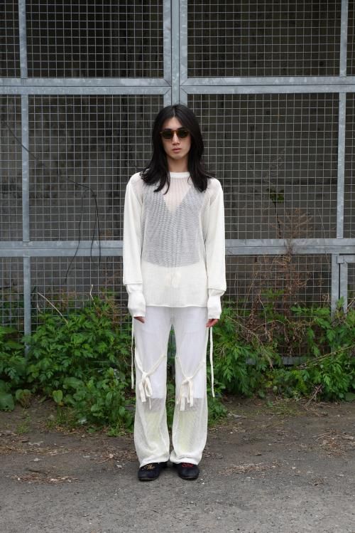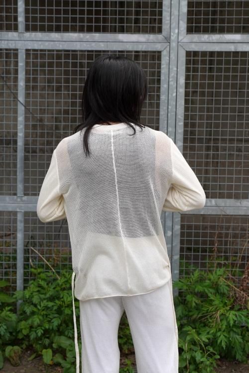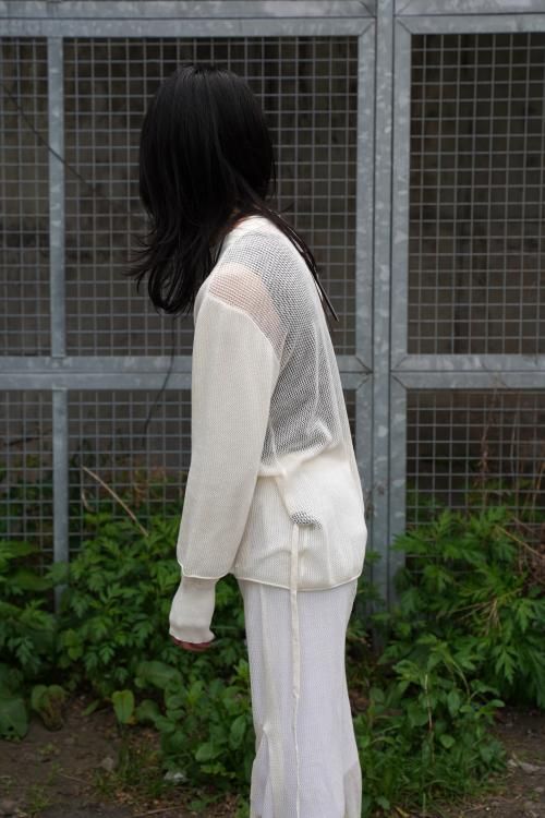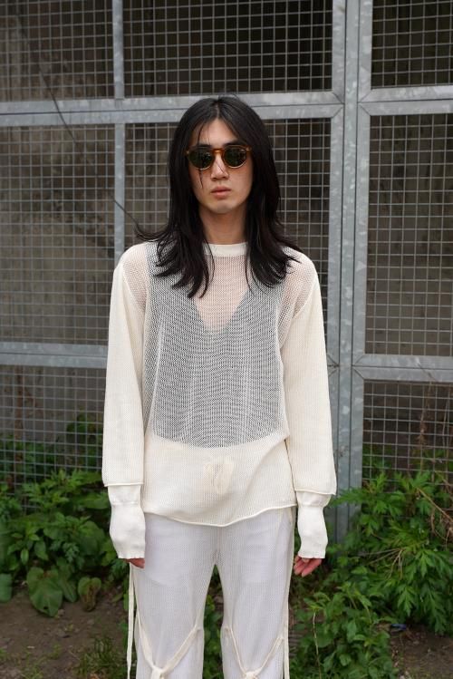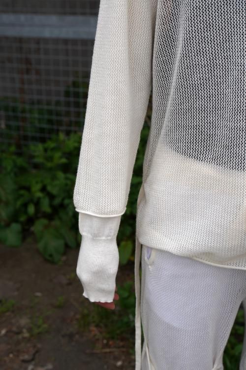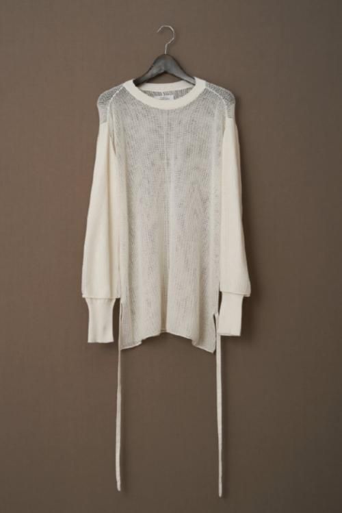 上質なカシミヤ混紡のメッシュニットに袖のみ同素材ニットでレイヤードした一着。