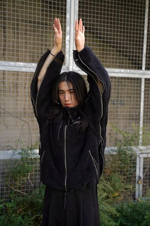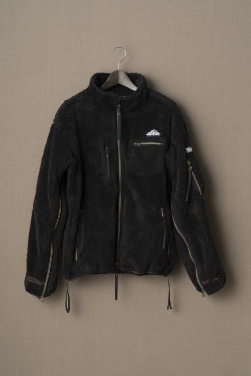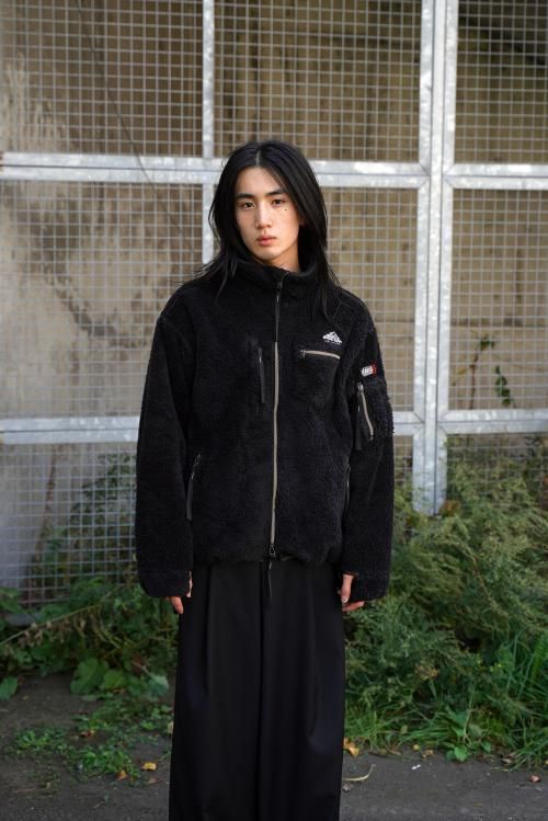 本来スタンダードであるアウトドアのギアとして有名なフリースブルゾンをLEHらしくサンプリングしたボアフリース。特徴的なのは、袖先から脇を越え、身頃の裾まで1本の逆開ファスナー。全体のシルエットを自由にし、ベンチレーションにも◎ 左胸にはMONSTER、LEHの刺繍。袖口にフィンガーホールが内蔵されている為、袖丈はやや長く設定されている。老若男女問わず人気のモデル。